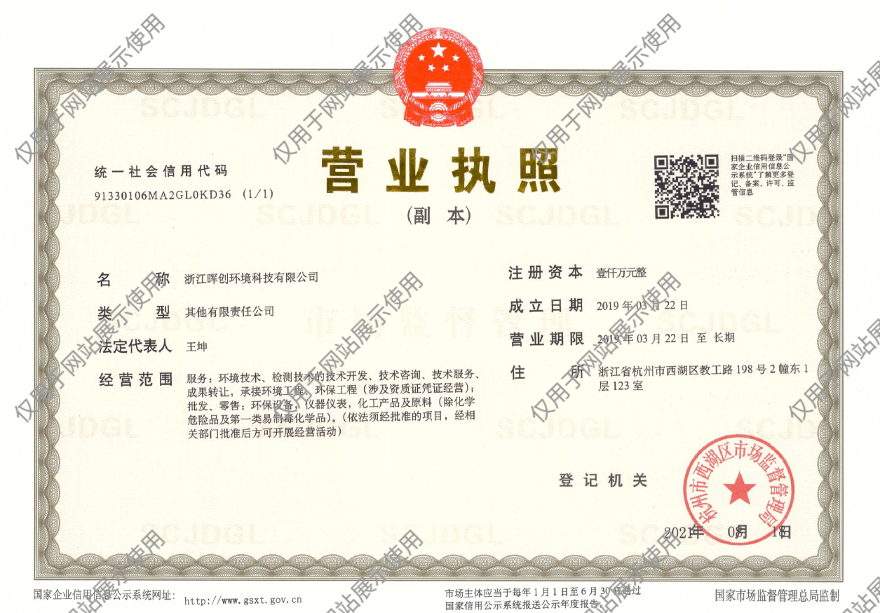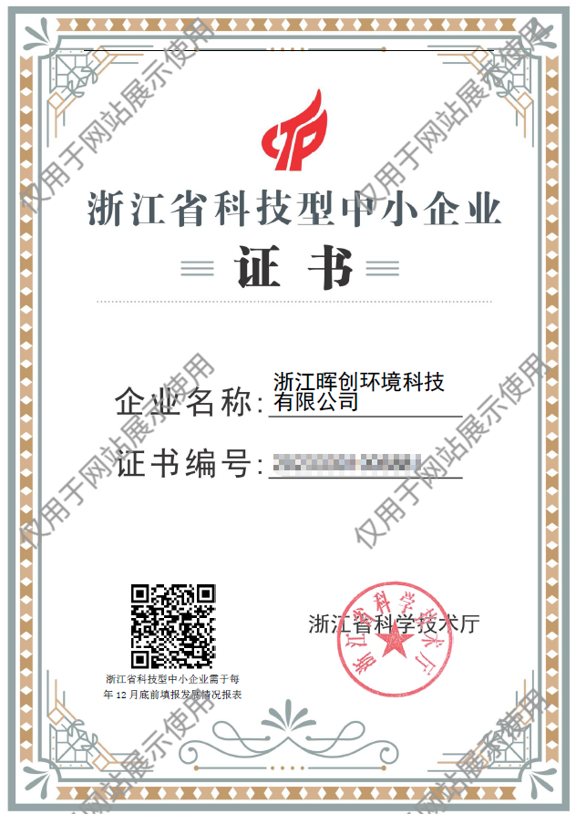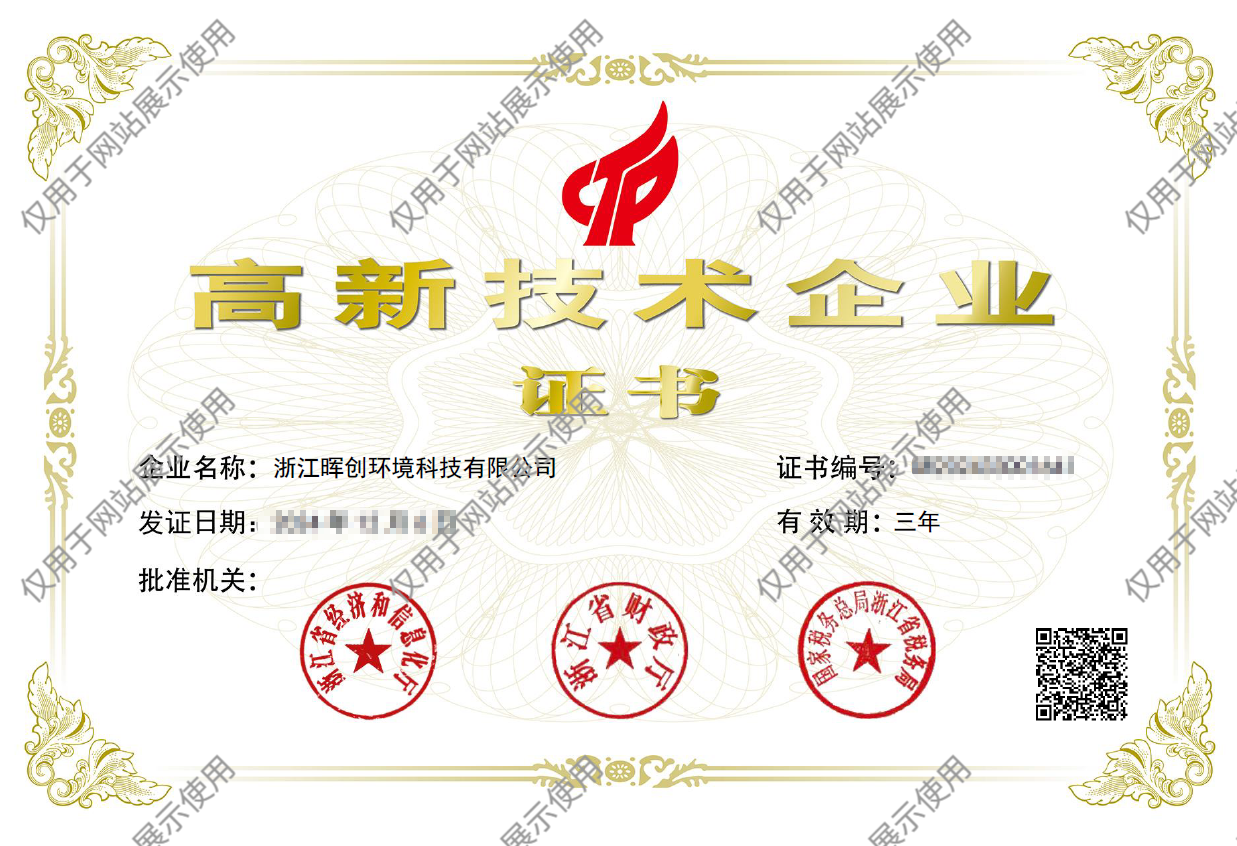 作为一家专注于环境领域的专业技术服务公司,晖创环境已成功获得国家高新技术企业和科技型中小企业认定,拥有浙江省生态与修复工程专项设计证书:废气治理乙级、废水处理乙级;浙江省生态与修复工程总承包证书:废气治理乙级、废水处理乙级、水环境综合治理乙级。