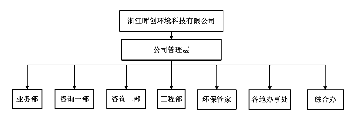 公司内部设有多个专业技术部门,包括:环保咨询部、环保工程部、环保管家部等。为更好地服务省内客户,晖创环境在嘉兴市、湖州市、丽水市、新昌县、桐乡市等地设立了多个办事处。